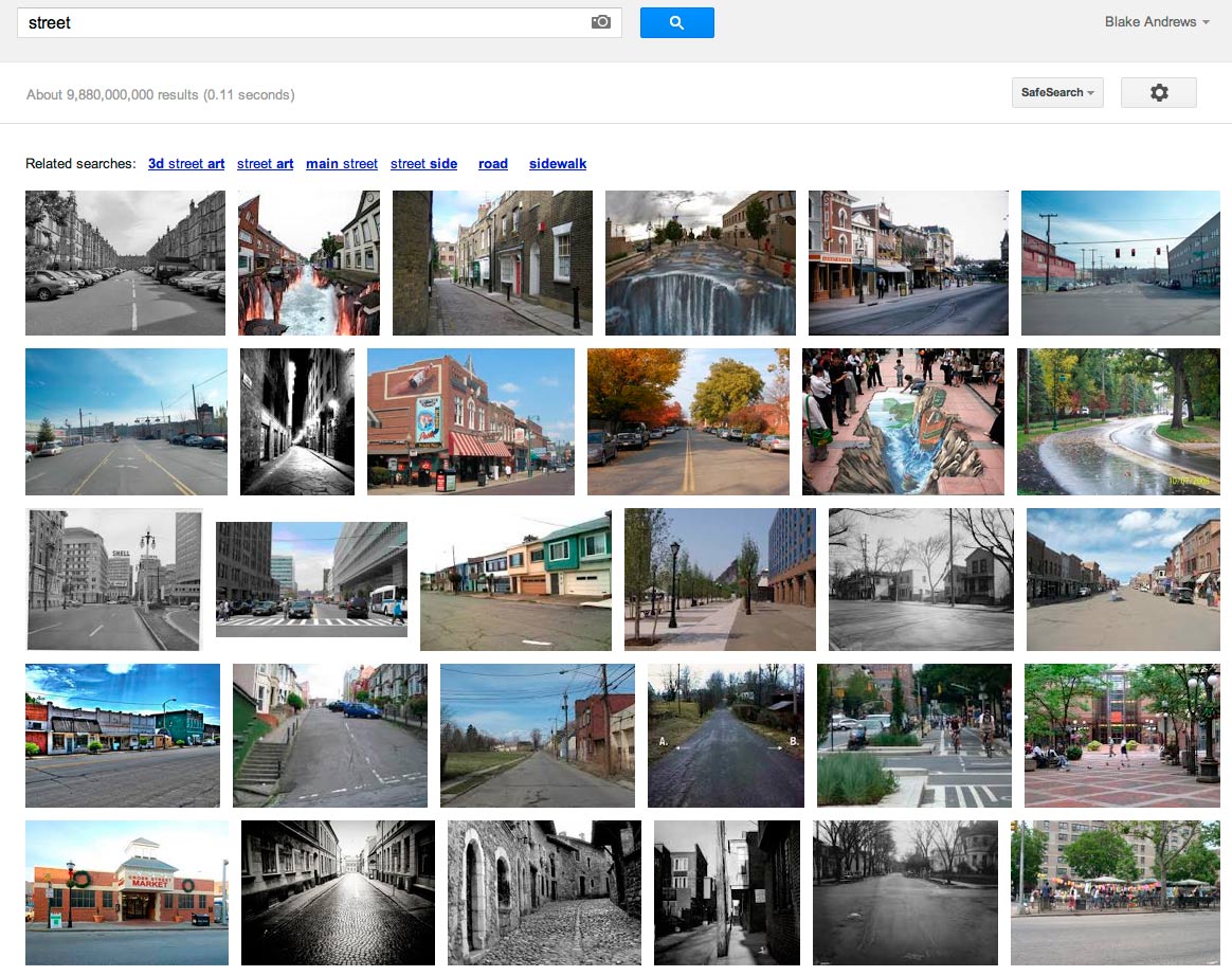 All of these photos of streets are wonderful. We've never had access to more. But I can't help wondering. After every street has been photographed by Google what will be left to shoot? What will the The 50 Greatest of tomorrow look like? Will the list include a machine on a car roof shooting in all directions? Will it make us ask De Tocqueville who? Or Dance with me, Coca-Cola? Only our children will know.