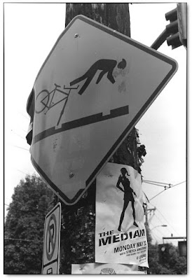 The other recurrent Bergerson motif is signs. I know signs have been photographed to death, and that they're often the source of bad visual puns and so-what moments. Still I am a sign lover. My knee-jerk reaction is to read every sign I come across for photographic possibilities, especially and above all handwritten signs because they are often the most organic elements in the social landscape. In Bergerson I recognize a fellow sign lover. I suspect he too cannot walk by any sign without reading it.